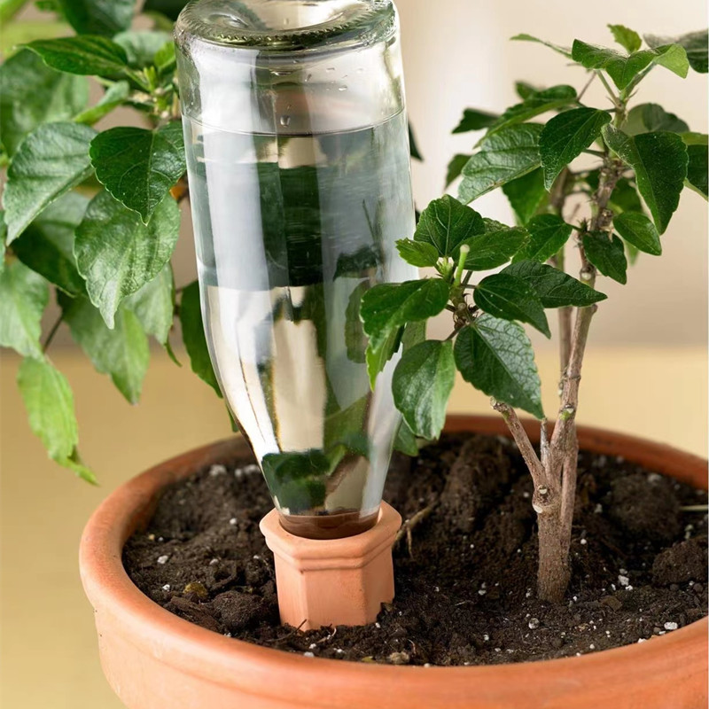 セラミック怠惰な自動花散水装置赤い陶器透水器 4 パックドリッパー庭点滴灌漑装置